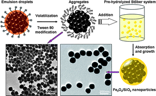 Nearly monodispersed Fe3O4/SiO2 composite particles were prepared via the direct silica coating on aggregates of Fe3O4 nanoparticles modified using Tween-80.