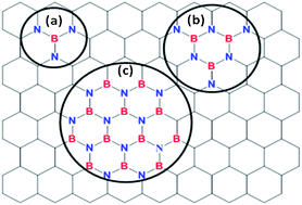 An atomic model showing the possible small BN units (a) and (b) that can be incorporated in a graphene matrix.