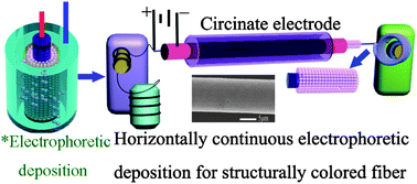 Structurally colored opal carbon fibers with controlled optical properties were prepared by a fast and continuous electrophoretic deposition method under a circinate electric field.