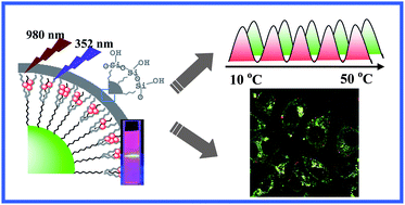 Silane modified UCNPs loaded with Eu(TTA)3 (TPPO)2 were synthesized for dual mode temperature sensing and cell imaging.