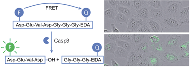 FRET-quenching based caspase 3-activatable new nanoprobes were developed for effectively sensing caspase 3 activity in vitro and in apoptotic cells.